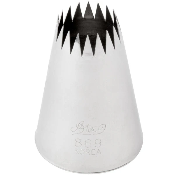¡Potencia tu creatividad en la cocina con la Boquilla 9 French Star #869! Esta boquilla de acero inoxidable cuenta con un corte de estrella abierta de 17 puntas, perfecta para añadir ese toque especial a tus tartas, cupcakes y postres. Con solo un giro de la manga, podrás crear hermosas conchas, estrellas, flores de lis, rosetas y más.