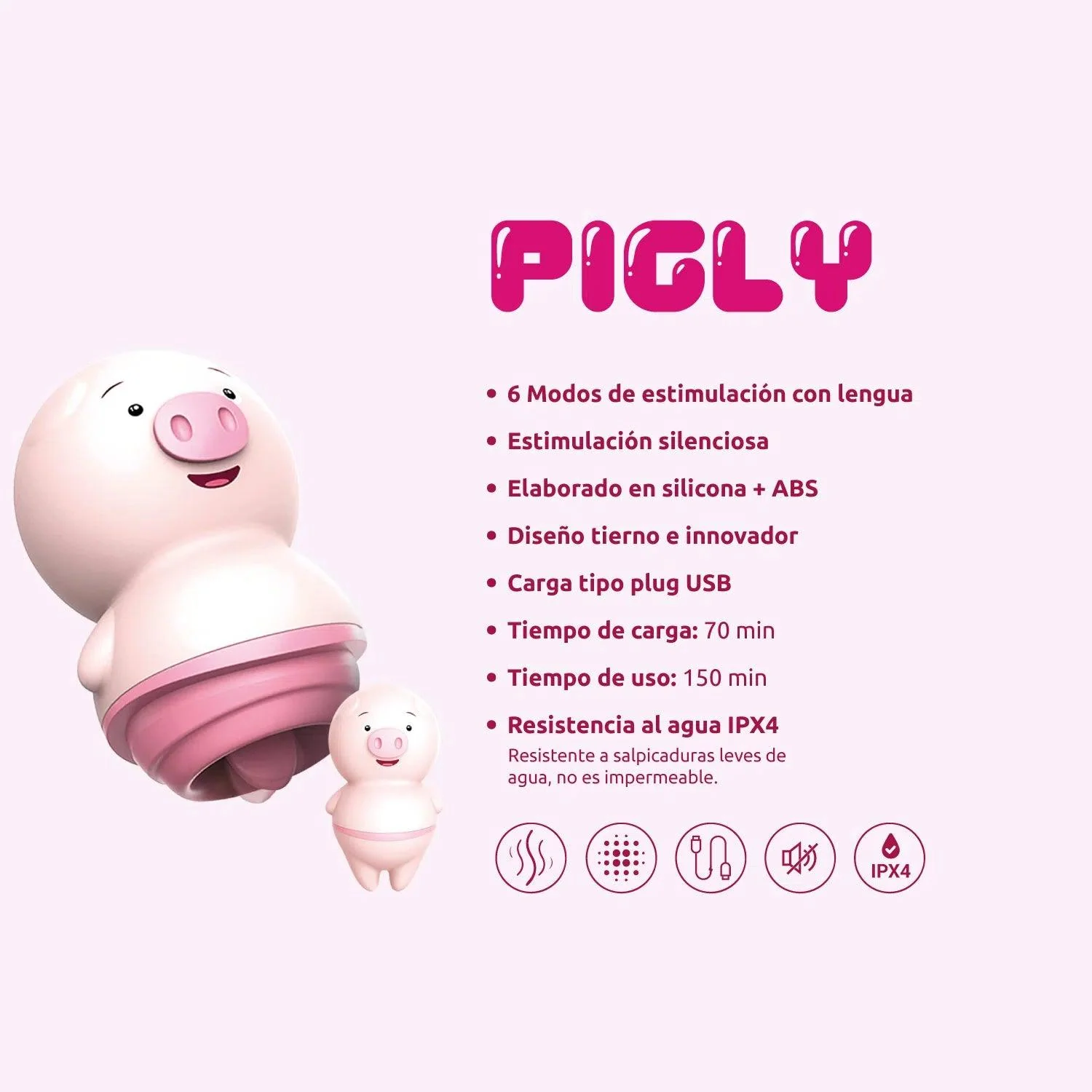 Diseñado pensando en ti, el Pigly Rosado está hecho de silicona suave, segura para el cuerpo y, ¡adivina qué! Eco-friendly para cuidar el planeta mientras te cuidas a ti misma. Con múltiples velocidades y patrones de vibración, controlables con un simple botón, puedes personalizar tu experiencia al máximo. Perfecto para la masturbación individual o para añadir un toque picante a tus encuentros en pareja. ¡Prepárate para sentirte más sexy que nunca con el Camtoyz Pigly!
