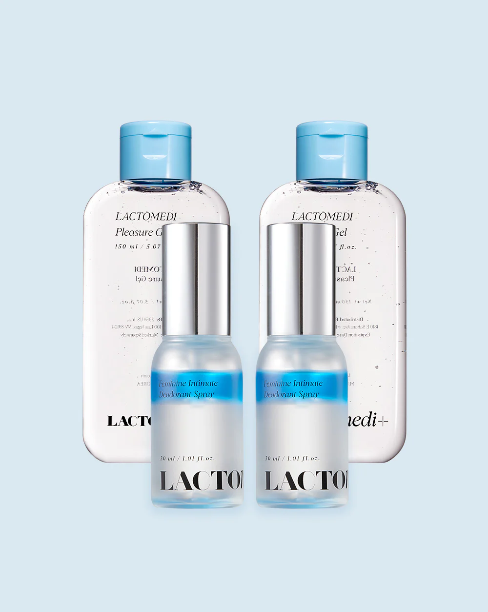 Incluye dos frascos de **Spray Desodorante Íntimo Feminino**, que mantienen tu frescura y confianza durante todo el día, y dos botes de **Gel de Placer**, perfectos para explorar nuevas sensaciones con tu pareja. Nuestros productos son **eco-amigables** y **seguros**, elaborados con ingredientes naturales que cuidan de ti y del planeta.