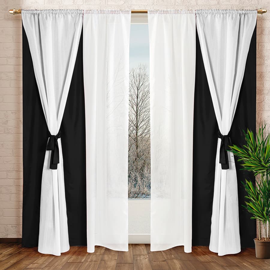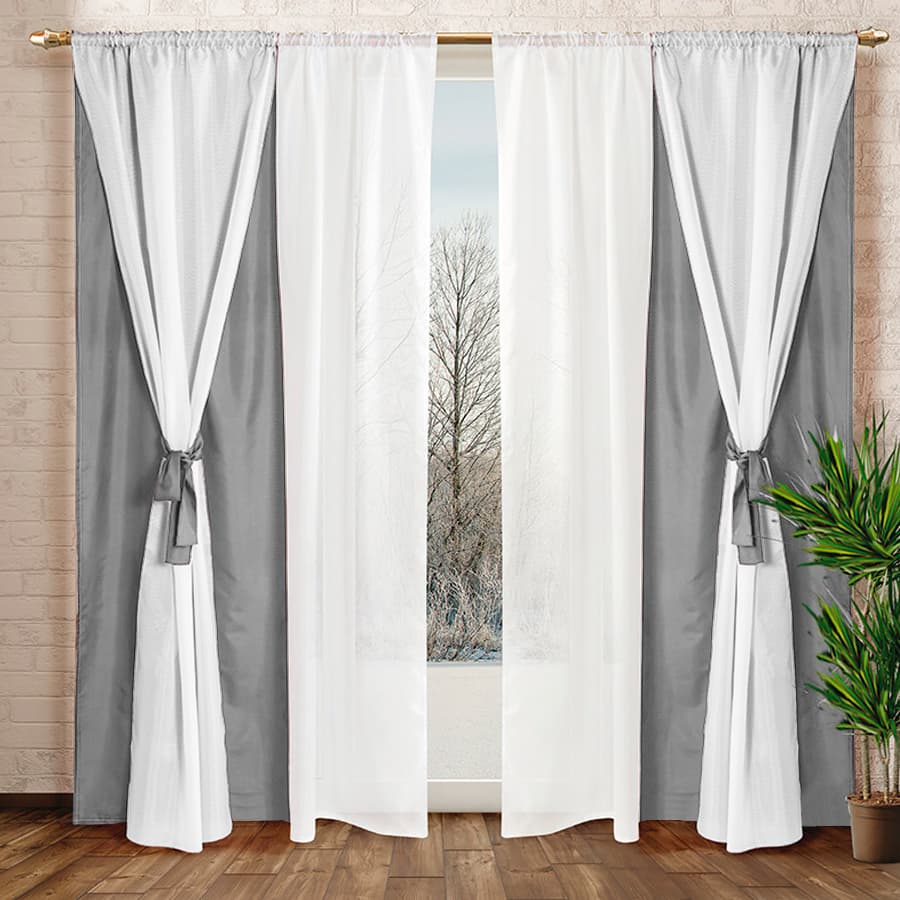 – **4 Paños de Cortinas en Tela Voile Blanco**: Con medidas de 75 cm de ancho por 210 cm de alto, aportan un toque de luminosidad y frescura a tus ambientes.