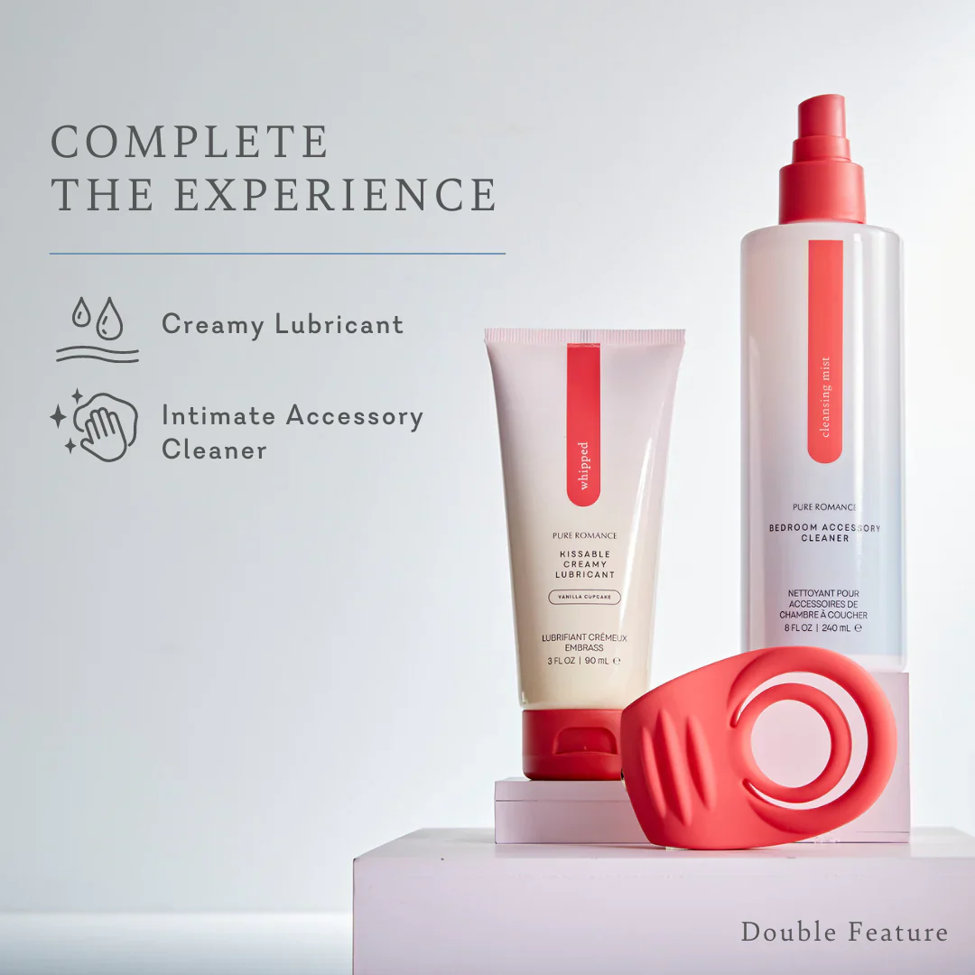 Fabricado con silicona de alta calidad, el “Double Feature” es eco-amigable y seguro para el cuerpo. Simplemente desliza un anillo sobre el miembro y el otro sobre el escroto, mientras el masajeador texturizado acaricia tu clítoris para elevar el placer a nuevas alturas. ¡Prepárate para sentir una conexión intensa y única!