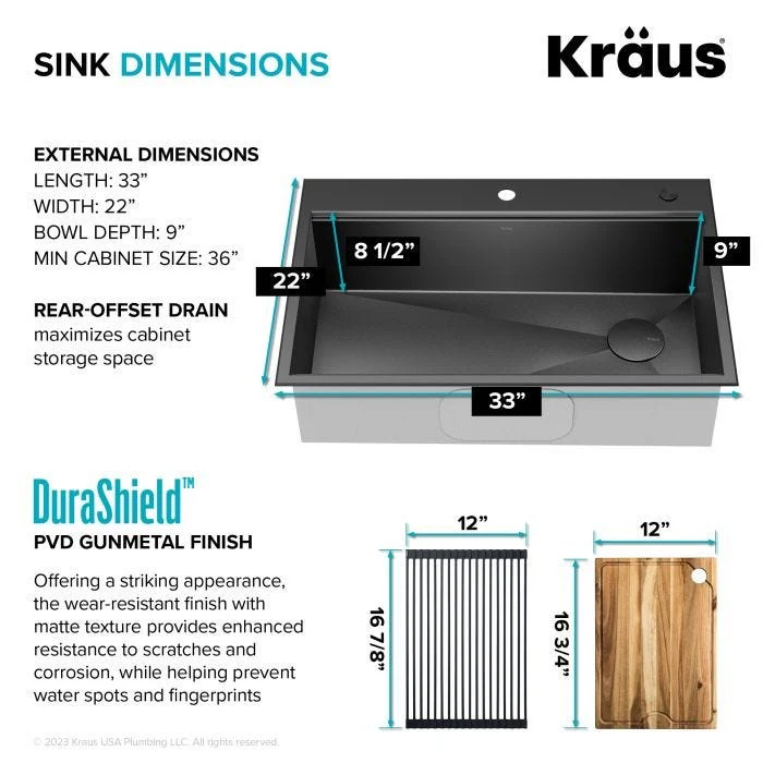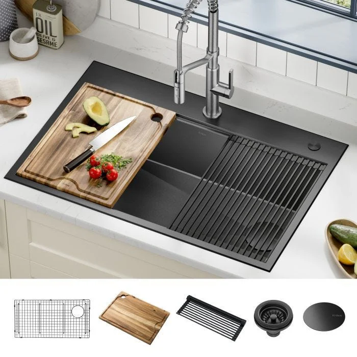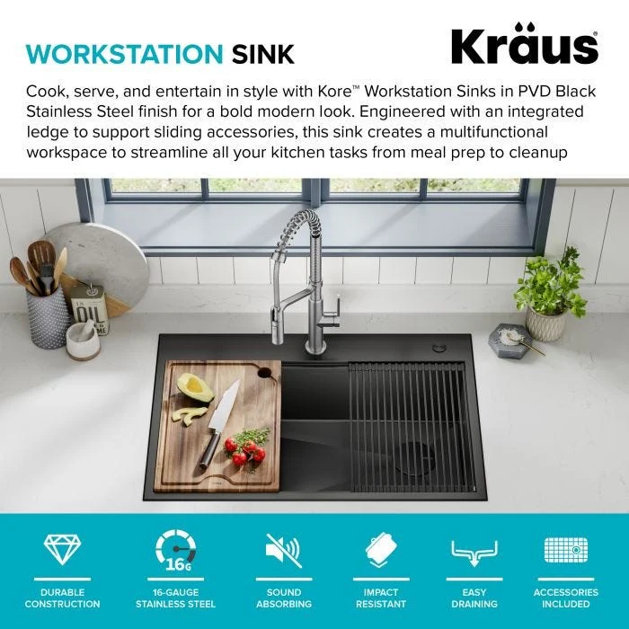 ¡Descubre el fregadero perfecto para tu cocina! El Fregadero WORKSTATION Sencillo Kraus KWT310-33/PGM combina un diseño elegante con funcionalidad superior. Con su impresionante terminación GunMetal en acero inoxidable 304 de calibre 16, este fregadero no solo es resistente y duradero, sino que también es una opción ecológica que minimiza el impacto ambiental.