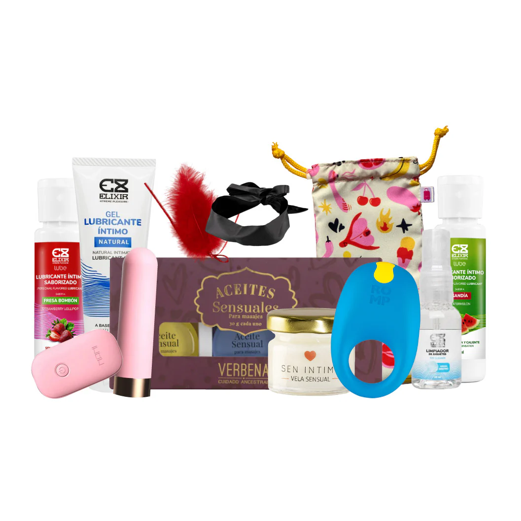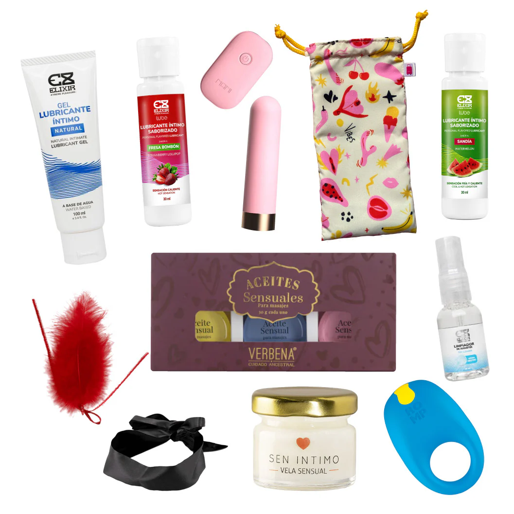Nuestro kit incluye: un kit sensorial para activar los sentidos, un kit de aceites para masajes para seducir el cuerpo y la piel de tu pareja, y una velita para masajes con feromonas para crear un ambiente romántico. Y no te preocupes por la limpieza, nuestro limpiador y bolsita para guardar tus juguetes te permiten disfrutar sin preocupaciones.