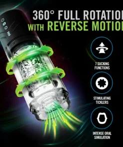 Con **7 modos de rotación avanzados** y **7 potentes modos de succión**, Whirlwind Pro te permite personalizar cada momento de placer. La tecnología de rotación de 360° te envuelve en un torbellino de sensaciones, mientras que la succión automática, equipada con una válvula de liberación de seguridad, te permite ajustar la intensidad a tu gusto. La cámara interior suave y texturizada ofrece una sensación increíblemente realista que transforma cada uso en un momento de lujo.