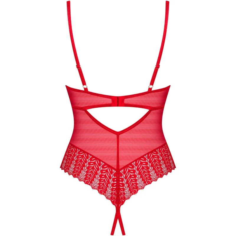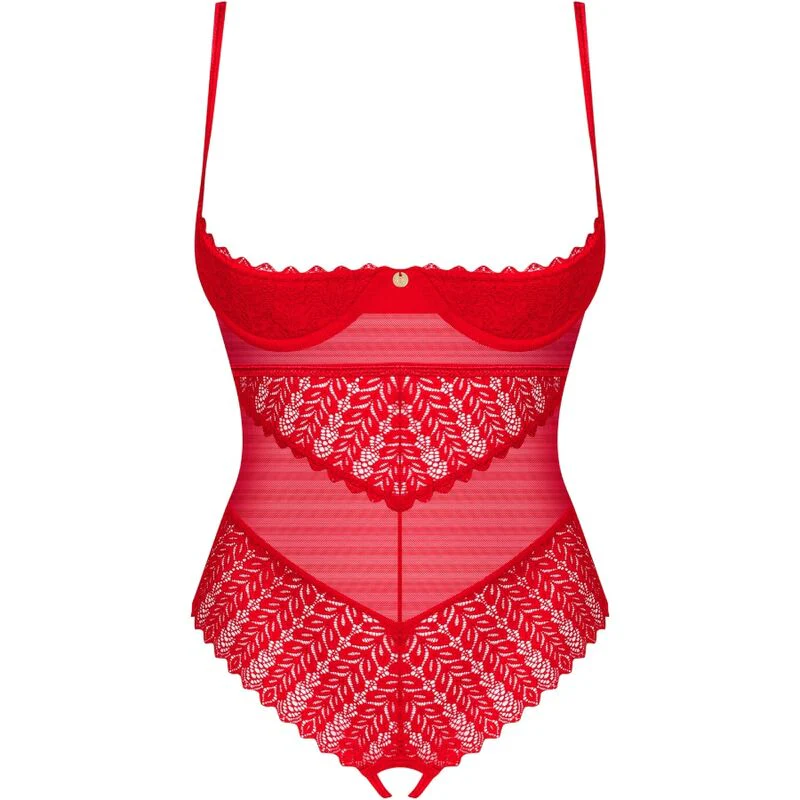 Características clave: teddy rojo, corte abierto, encaje sexy, ajuste perfecto, materiales eco-friendly, lencería sensual, Obsessive.