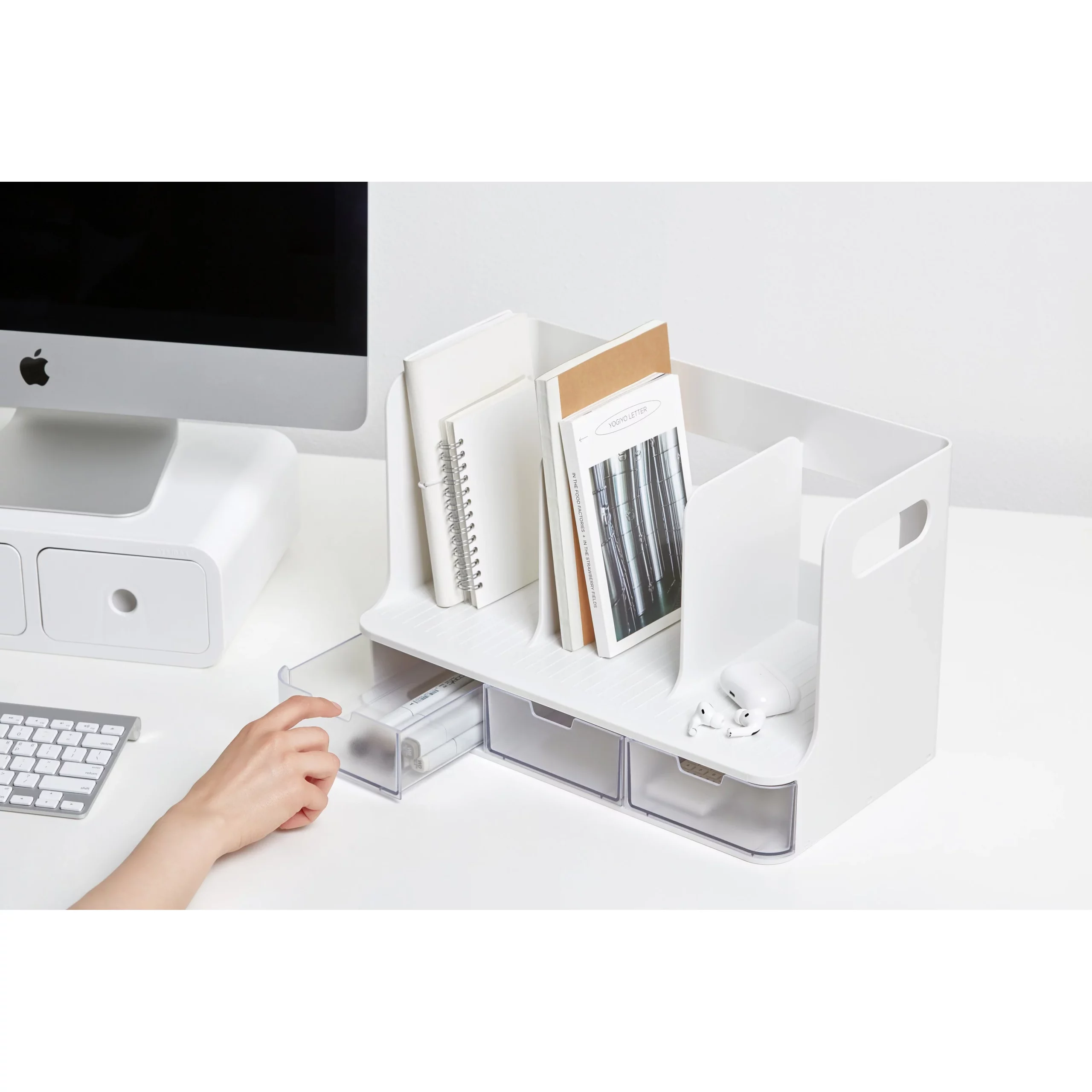 ¡No esperes más! Añade el Rack Libros con Cajones Olio Transparente a tu carrito y transforma tu espacio en un lugar más organizado y atractivo hoy mismo!