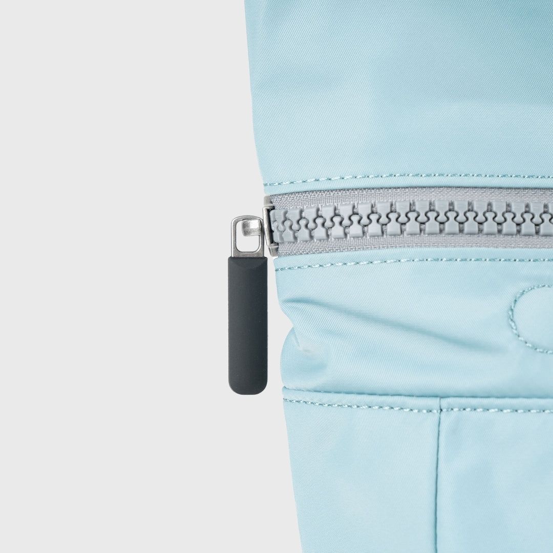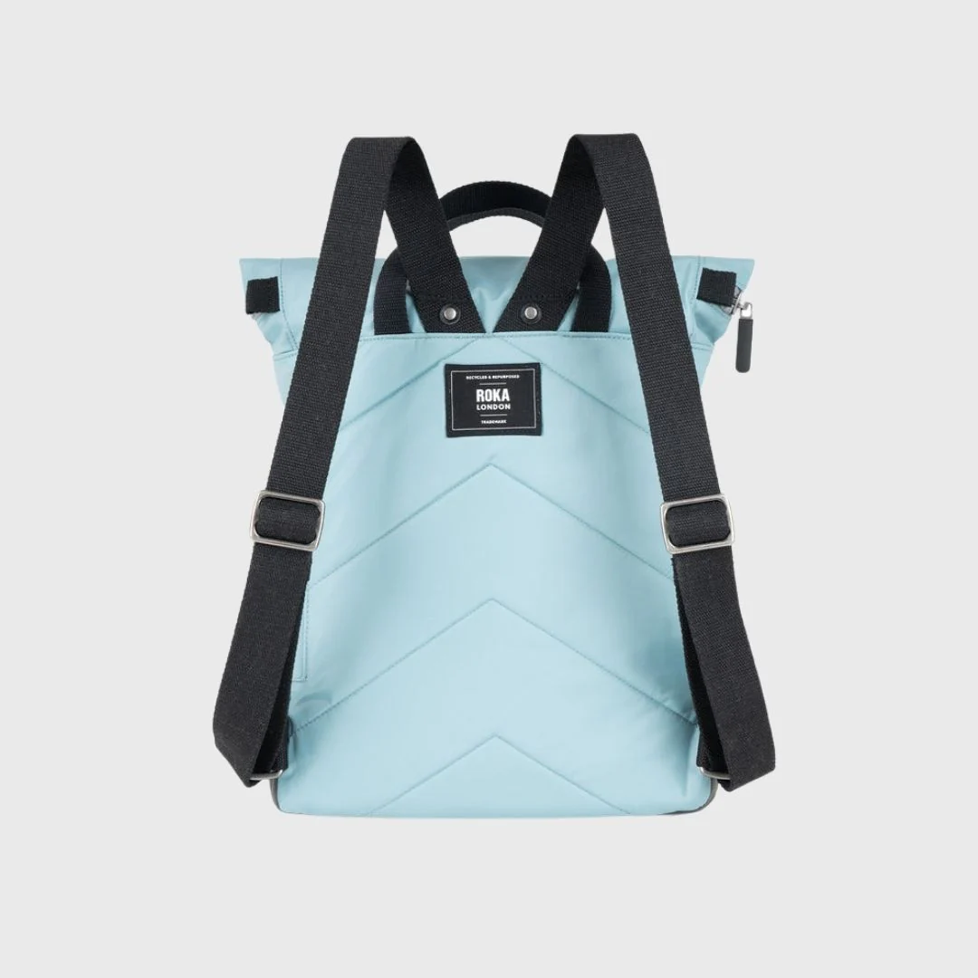 El Roka London Canfield B Black Label Recycled Nylon Backpack Small Spearmint es la mochila que transformará tu forma de llevar tus pertenencias. Diseñada con una tapa enrollable, ofrece una abertura de boca ancha, perfecta para acceder a tus cosas de manera rápida y fácil. Con su cremallera gruesa y soportes magnéticos, puedes enrollar la tapa y proteger tus objetos personales, o desenrollarla para esa última carga de equipaje.