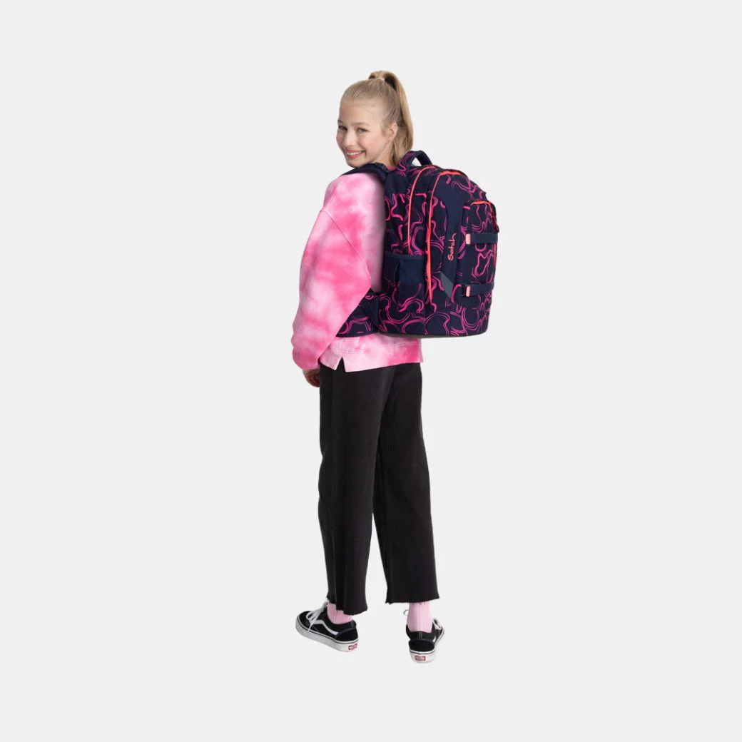 Sorpréndete con las correas SWAPS intercambiables que personalizan tu mochila en segundos. ¡Haz de la Satch Pack Pink Supreme tu elección ideal y marca la diferencia!