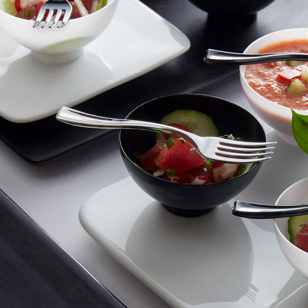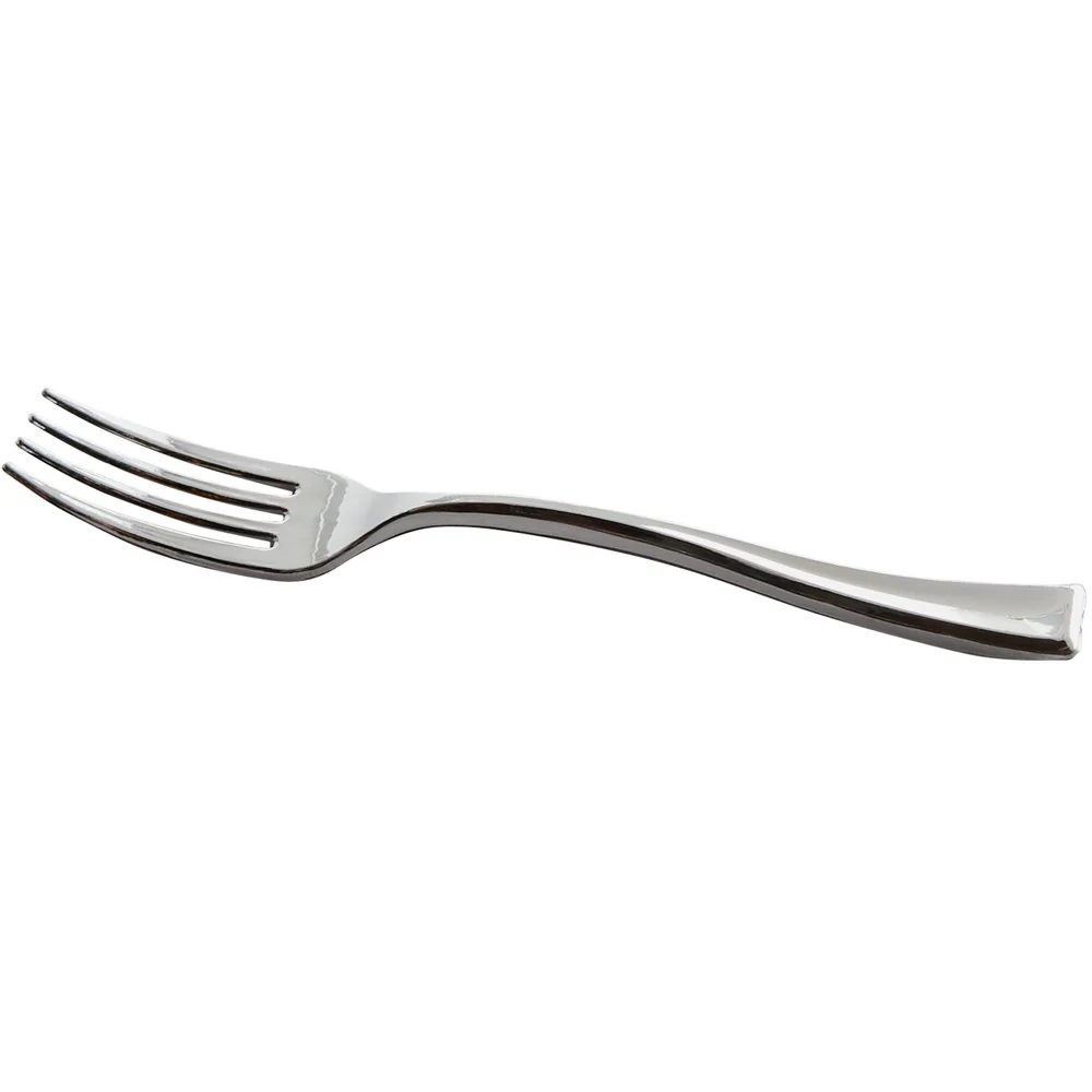 Tenedor de plástico plateado resistente y seguro para el medio ambiente