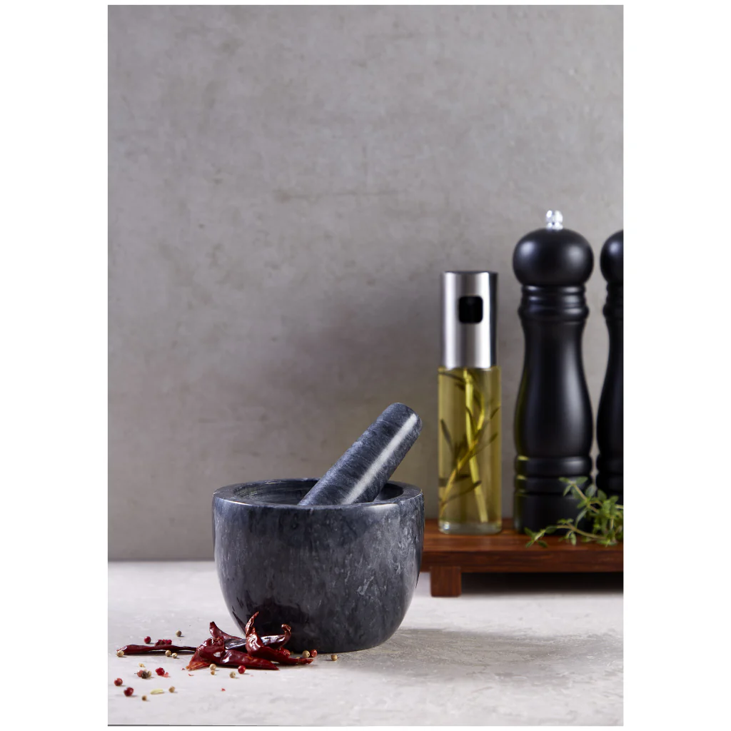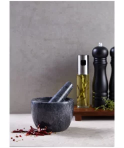 Descubre el Mortero Mármol Negro 13 Cm, la herramienta de cocina perfecta para los amantes de la gastronomía que buscan un toque de elegancia y funcionalidad. Fabricado con mármol negro natural, este mortero no sólo es visualmente impresionante, sino que también es ecológico y seguro para el uso diario. Olvídate de los plásticos y los materiales tóxicos; nuestro mortero está diseñado para brindarte un espacio de cocina saludable.